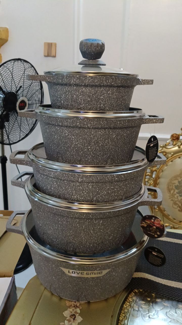 The 10 PCS Love Smile High Quality Granite Pot LS2010 is a stylish and durable cookware set designed for everyday cooking. Crafted with high-quality granite coating, these pots offer excellent heat distribution, scratch resistance, and easy cleaning. Featuring vibrant colors and a cheerful “Love Smile” design, this set adds a fun and functional touch to your kitchen, perfect for preparing a variety of dishes efficiently.