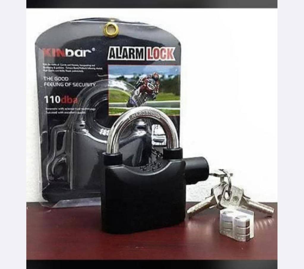 Alarm Padlock, secure and durable with built-in alarm feature. Ideal for bikes, lockers, and outdoor equipment. Provides extra security with loud alert on tampering.