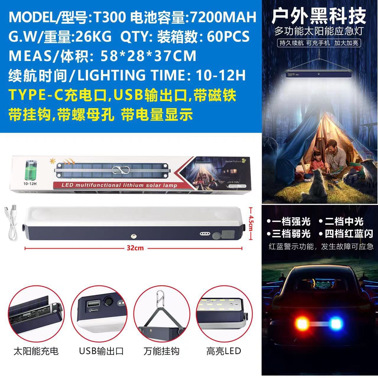 Indoor and outdoor solar rechargeable security light. Designed for safety and security, it automatically charges via solar power and provides bright illumination for homes, gardens, or roads. Easy to install, eco-friendly, and long-lasting.