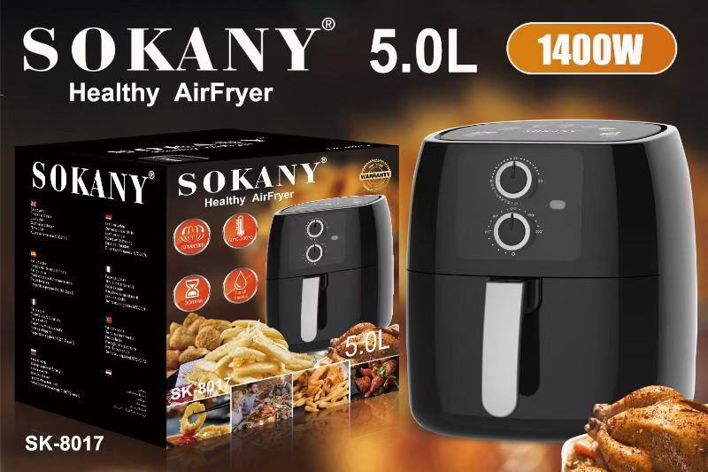 The Sokany 5 Liters Air Fryer revolutionizes cooking by offering a healthier way to enjoy your favorite fried foods. With its spacious 5-liter capacity, this air fryer is perfect for family meals and entertaining guests. It uses rapid air circulation technology to cook food evenly, providing that crispy texture with minimal oil. The user-friendly control panel lets you easily adjust time and temperature settings, ensuring perfectly cooked meals every time. Compact yet powerful, the Sokany Air Fryer is a must-have appliance for any kitchen.